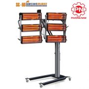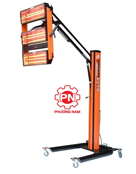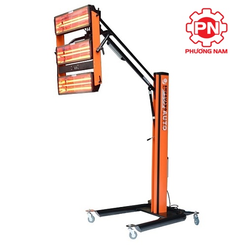 Chiều cao của cần đèn có thể điều chỉnh từ 400mm – 2.500mm, có bánh xe di chuyển, linh hoạt hơn để sấy sơn.