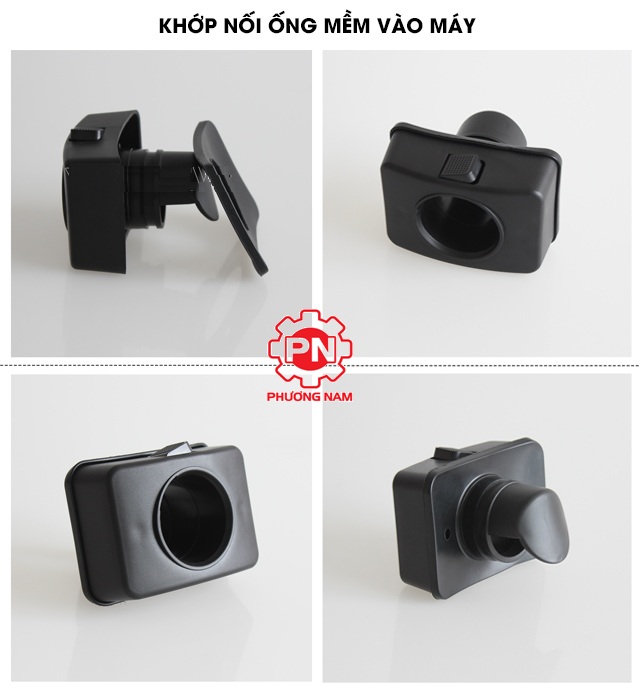 Khớp nối dây mềm vào máy là phụ kiện kết nối và cố định những đoạn ống mềm vào thân thùng chứa bụi, giúp máy hoạt động ổn định để thu gom triệt để mọi loại bụi, rác bẩn trong không gian cần vệ sinh. Khớp nối dây thường làm từ chất liệu nhựa cứng, bền chắc