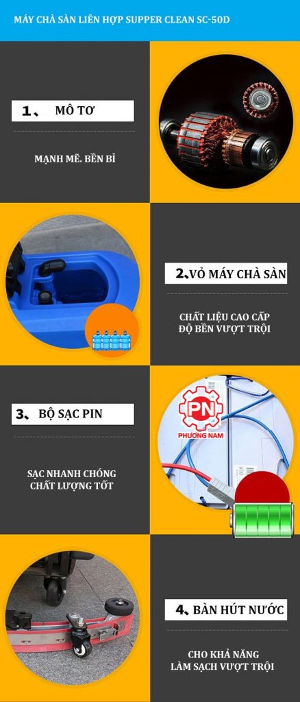 Máy chà sàn là một trong những thiết bị giữ vai trò đặc biệt quan trọng trong việc vệ sinh, bảo dưỡng sàn nhà một cách hiệu quả. Đặc biệt, máy chà sàn liên hợp Supper Clean SC-50D được biết đến là một trong những sản phẩm sở hữu rất nhiều ưu điểm nổi bật, được người dùng đánh giá cao hiện nay.