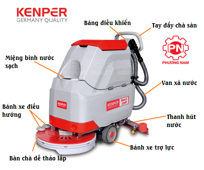 Máy chà sàn Kenper Đức không những nổi tiếng với nhiều công nghệ chà rửa sàn độc quyền, độ ồn cực nhỏ, động cơ chà khỏe, động cơ hút mạnh, ắc quy bền mà còn thu hút người dùng bởi các thiết kế chuyên nghiệp như chà sàn liên hợp đẩy tay, chà sàn liên hợp ngồi lái…để người dùng có thể lựa chọn khi mua máy chà sàn. Và Kenper S520B Basic là một trong những mẫu máy bán chạy nhất của Kenper dành cho các công ty chuyên hoạt động trong lĩnh vực dịch vụ vệ sinh công nghiệp hiện nay.