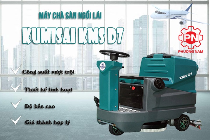 Kumisai là thương hiệu thiết bị máy vệ sinh công nghiệp nổi tiếng đã và đang được rất nhiều đơn vị lựa chọn. Trong đó, tiêu biểu là dòng máy chà sàn ngồi lái Kumisai KMS D7 với hàng loạt ưu điểm nổi trội giúp quá trình vệ sinh trở nên đơn giản và dễ dàng hơn nhiều. Máy chà sàn ngồi lái Kumisai KMS D7 có khả năng vận hành tốt, ổn định, cùng năng suất 4200m2/h giúp máy làm sạch, dọn dẹp một cách vượt trội, đem đến cho khách hàng sự hài lòng cho khách hàng.