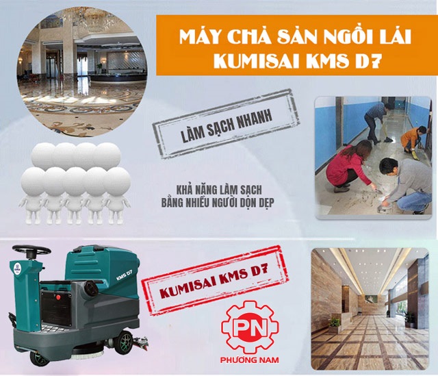 – Kumisai KMS D7 là dòng máy chà sàn liên hợp cho nên máy có thể vừa hút nước thải, vừa chà sàn