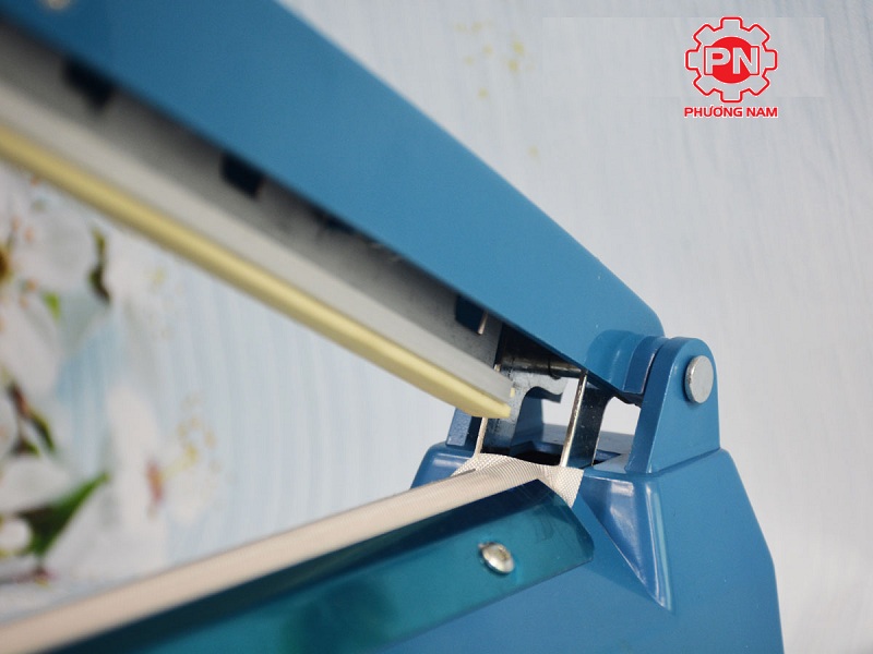 - Bạn đặt miệng túi nilon lên máy hàn miệng túi.