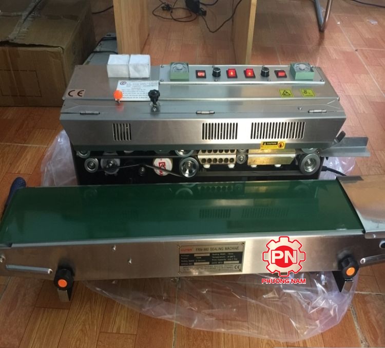 Máy hàn miệng túi liên tục FRM 980 là loại máy hàn miệng túi mới được cải tiến kết hợp từ máy hàn miệng túi liên tục, do nhu cầu cần tiết kiệm nhân công và thời gian. Máy có thêm cả chức năng in date, in ngày sản xuất – hạn sử dụng trên mép đường hàn.