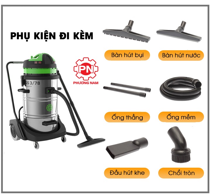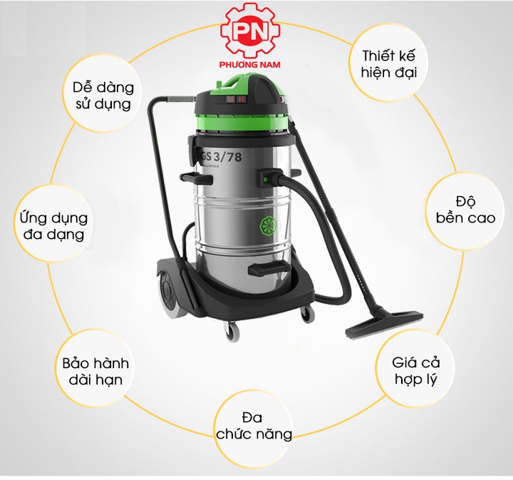 Model GS 3/78 W&D có thể hút được bụi khô, hút nước hiệu quả; đáp ứng được mọi yêu cầu vệ sinh của người sử dụng. Đặc biệt, máy còn sở hữu 3 motor hoạt động với tổng công suất lên đến 3600W; vì vậy mà sản phẩm phù hợp sử dụng để thu gom triệt để mọi loại bụi, rác, nước bẩn ở cả mặt phẳng rộng rãi lẫn các khe, góc hẹp khó can thiệp bằng các dụng cụ thông thường. Từ đó các đơn vị doanh nghiệp sẽ tiết kiệm được chi phí thuê dịch vụ vệ sinh tốn kém, giảm thiểu chi phí thuê nhân công; nâng cao hiệu suất công việc.