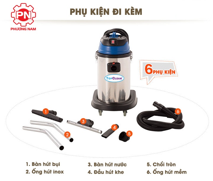 - Chức năng: hút khô/ hút nước và các bụi bẩn công nghiệp
