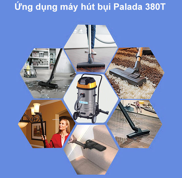 Máy hút bụi công nghiệp Palada 380T vừa có khả năng hút bụi khô, vừa hút nước hiệu quả. Hơn nữa, chiếc máy “2in1” còn được trang bị nhiều loại đầu hút đi kèm khác nhau, nhằm đáp ứng mọi yêu cầu sử dụng cho nhiều khu vực khác nhau, giúp nâng cao hiệu quả vệ sinh. Chính vì thế mà thiết bị rất thích hợp với các ngành công nghiệp dược phẩm, mỹ phẩm, bệnh viện,..; tránh được tình trạng lây nhiễm chéo chất bẩn, vi khuẩn,…