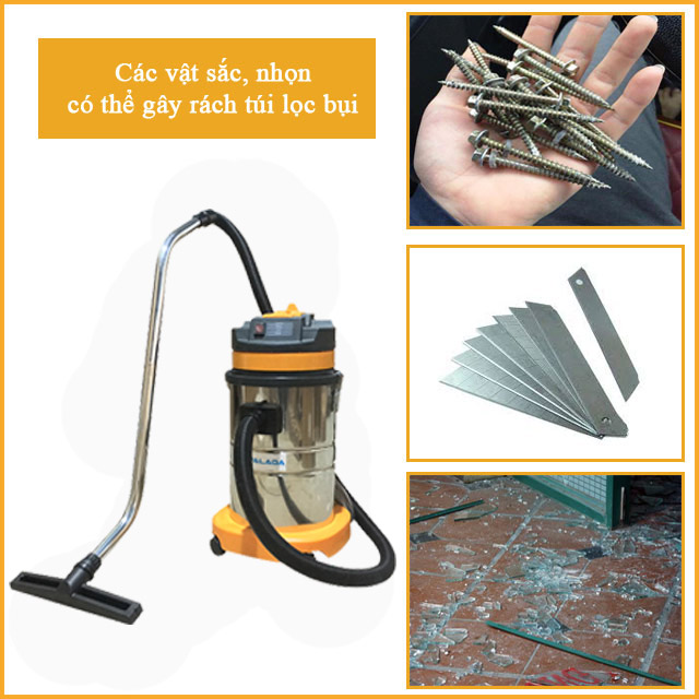 – Không hút những vật có kích thước to hơn đầu hút, vật sắc nhọn, chất dễ cháy,… có thể gây rách túi lọc.