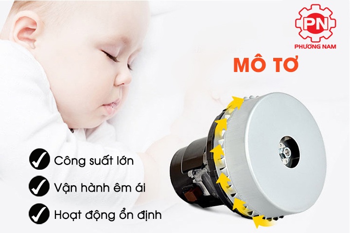 Đây là dòng máy hút bụi công suất lớn, dung tích thùng chứa bụi lên tới 70l nhưng máy được thiết kế với kiểu dáng khá tinh gọn, đơn giản, tạo sự tiện dụng khi sử dụng. Trên đầu máy được thiết kế với hai công tắc tương ứng với sự vận hành của 2 motor máy, khi người dùng ấn cả hai công tắc này thì 2 motor máy cùng hoạt động với tổng công suất là 3000W. Với mức công suất này, máy phù hợp sử dụng để hút bụi bẩn cho các không gian có diện tích rộng lớn như nhà xưởng, khu công nghiệp, trung tâm thương mại, khách sạn,…có tần suất phải làm sạch liên tục. Động cơ hoạt động khỏe do đó máy có thể làm việc với hiệu suất cao mà không bị nóng máy, đảm bảo hiệu quả hút bụi bẩn tốt nhất.