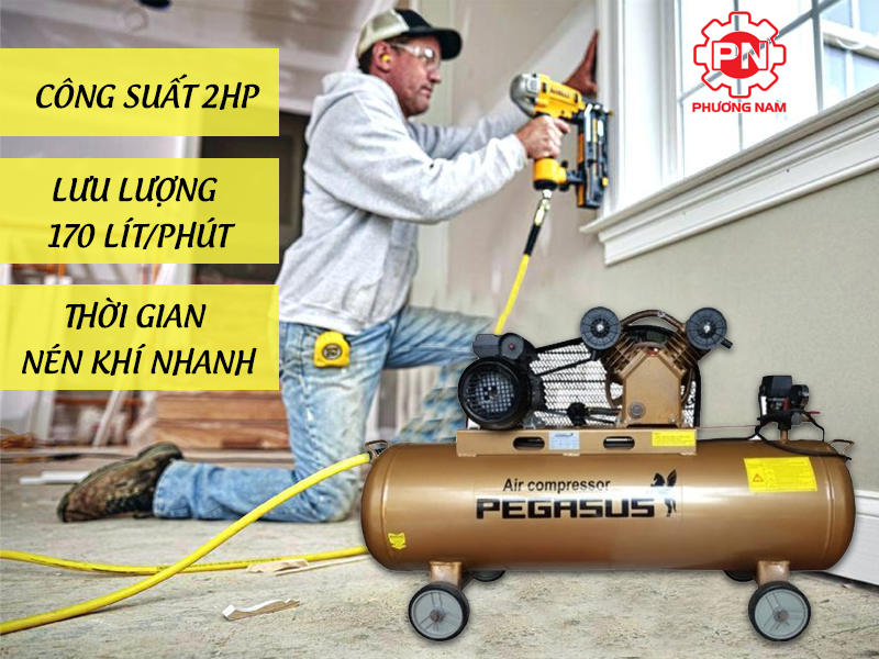 Máy nén khí Pegasus 180lít 2HP TM-V-0.17/8-180L với thiết kế tối giản dễ dàng vận hành và đảm bảo an toàn tuyệt đối cho người sử dụng nhờ hệ thống chốt an toàn tự động kích hoạt khi phát hiện những sự cố trên máy nén khí. Đồng hồ đo áp giúp người nắm bắt mọi thông số và điều tiết được quá trình vận hành của máy.