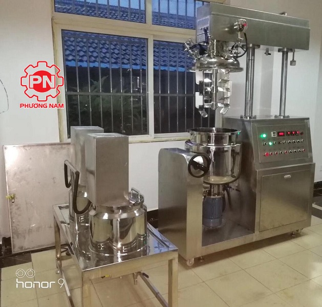 - Tổ máy gồm: bồn dầu, bồn nước, máy nhũ hóa chân không, hệ thống gia nhiệt, hệ thống đảo trộn, hệ thống chân không, hệ thống tự động nâng hạ, tủ điều khiển, hệ thống đường ống cấu thành, thích hợp dùng trong sản xuất các loại dược phẩm cao cấp, hóa mỹ phẩm hoặc thực phẩm dạng kem.