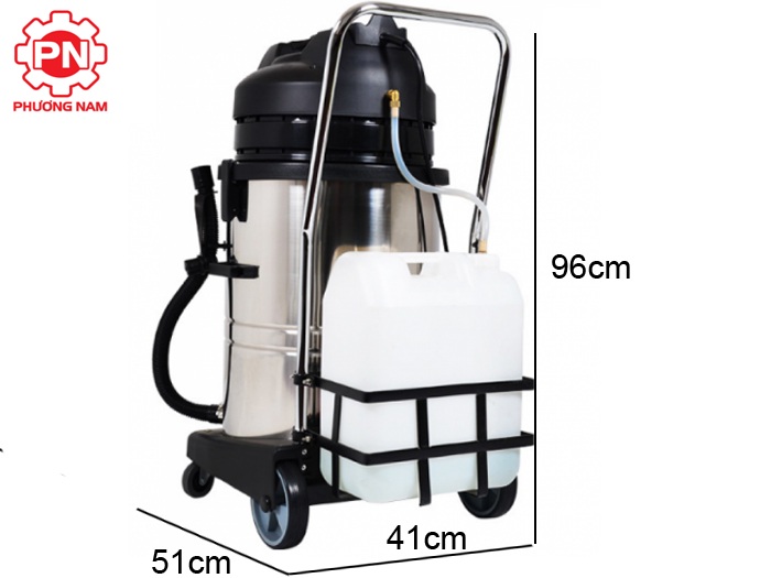 – Máy có 3 chức năng: Hút bụi, hút nước và giặt thảm, giặt ghế ôtô, sofa… Thích hợp là vệ sinh ở văn phòng, nơi rửa xe, khách sạn mini và các hộ gia đình.