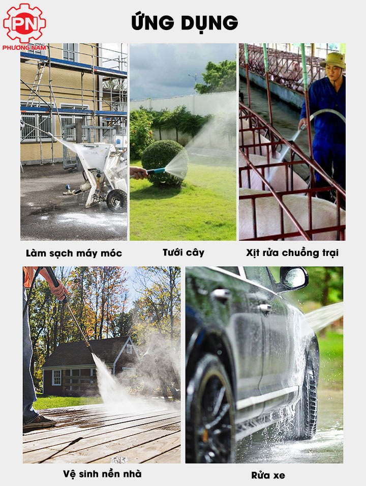 – Tuyệt đối không để vòi phun tiếp xúc với da người, mắt, hoặc vật nuôi, động vật bởi áp lực phun lớn sẽ gây tổn thương và ảnh hưởng nghiêm trọng đến tính mạng.