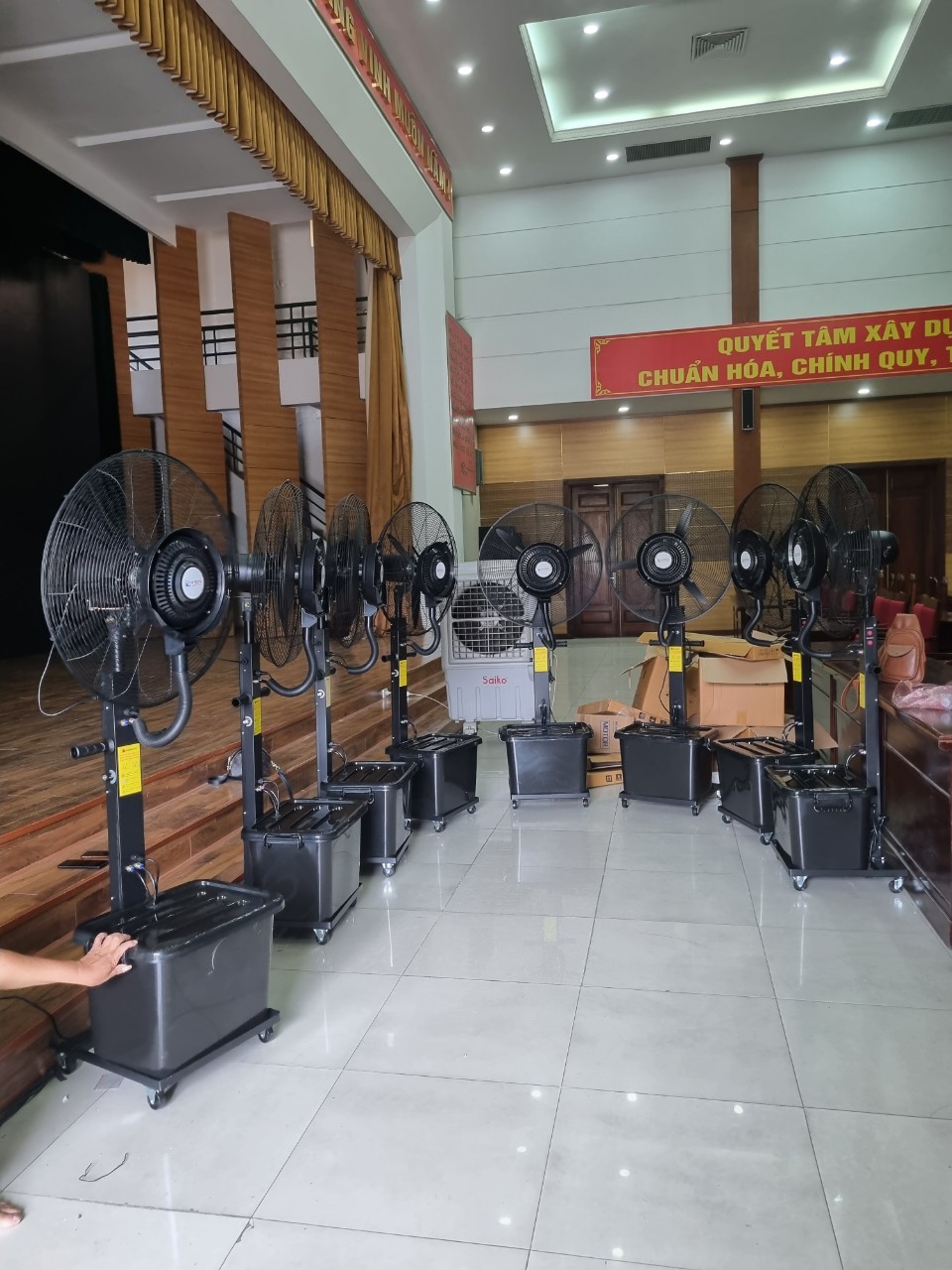 Quạt phun sương công nghiệp là một thiết bị làm mát bằng cách đưa hạt sương do sóng siêu âm tạo ra vào luồng gió và lan toả ra không gian xung quanh. Vì cơ chế phun sương trực tiếp nên hiệu quả tạo ẩm cao, giải nhiệt nhanh trong mùa hè nóng nực. Quạt phun sương công nghiệp tạo ra sương mù và hơi ẩm hạ nhiệt cho môi trường, lắng bụi, tạo không khí mát mẻ dễ chịu. Độ bền cao, vận hành êm và đặc biệt có thể điều chỉnh lượng sương phun ra. Phù hợp cho: nhà hàng, quán ăn, nhà máy, quán café, không gian ngoài trời, sân vườn, trong siêu thị dùng để phun rau củ quả luôn tươi ngon, xưởng , nhà máy, nhà ăn bệnh viện, nhà ăn tập thể nhà máy …