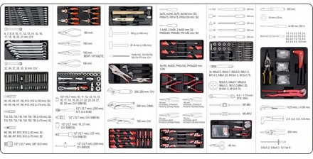 Tủ dụng cụ sửa chữa YT-55292 có đầy đủ các chi tiết thông dụng nhất hiện nay như: các loại cờ lê mỏ lết, kìm kẹp các loại, đầu khẩu tay vặn hay đầu khẩu dùng cho súng, các loại tuốc nơ vít và đầu tuốc nơ vít, bộ búa đục đột đa năng, tay vặn khẩu các loại. Sản phẩm chuyên dụng dành cho công việc sửa chữa.